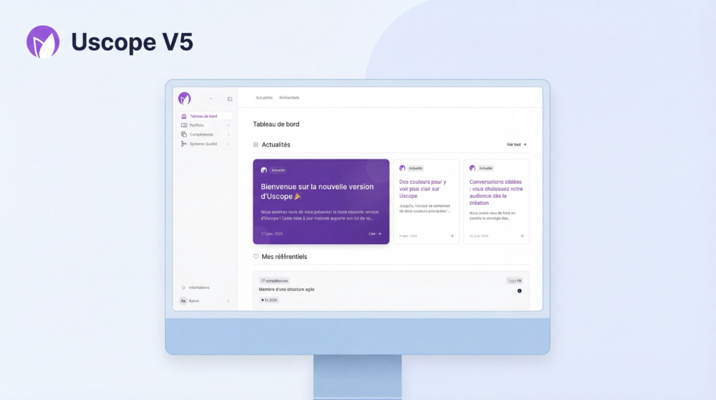 C’est officiel : Uscope V5 est en ligne depuis le 26 janvier 2026 ! Notre écosystème fait peau neuve avec une refonte complète de l’interface utilisateur/trice. Design modernisé, expérience fluide, personnalisation poussée : cette nouvelle version marque un tournant majeur dans l’accompagnement des compétences pour renforcer l’employabilité. Au programme : Dark Mode, double niveau d’interface (Zen et Focus), édition en masse, vues multiples, et bien plus encore. Uscope V5 s’adapte vraiment à vous, que vous soyez débutant·e ou utilisateur/trice confirmé·e. Découvrez dès maintenant une expérience repensée de A à Z, conçue pour valoriser vos compétences tout au long et tout au large de la vie.